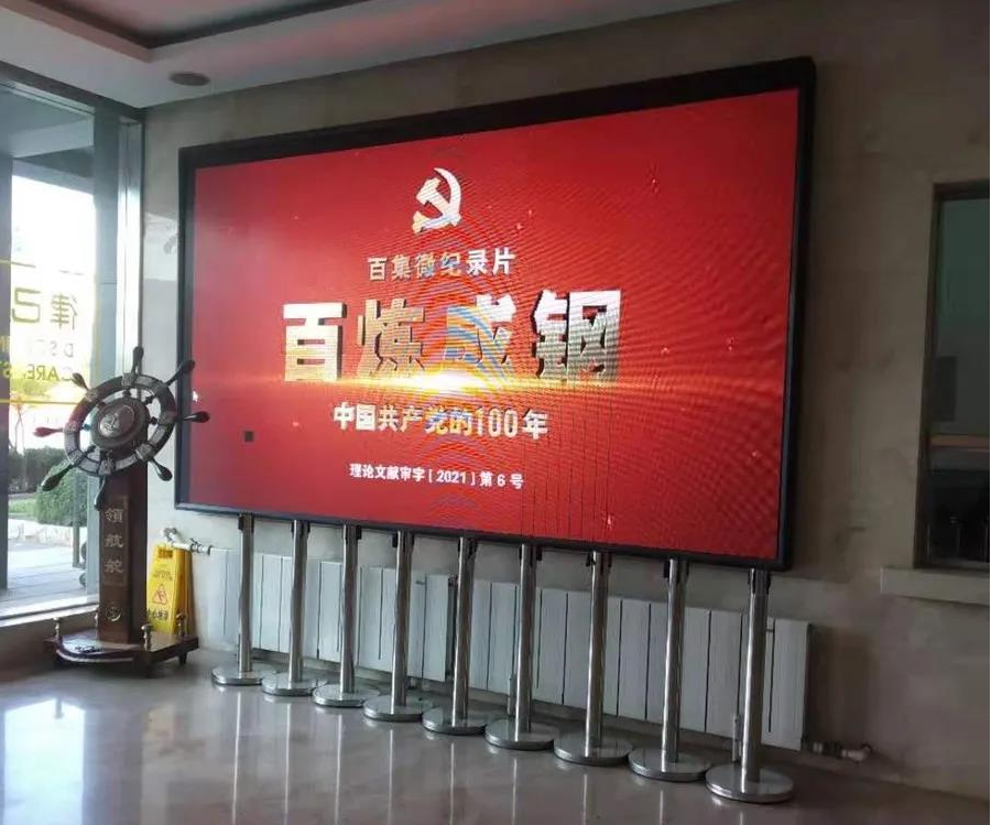 一楼大厅每天循环播放一集党史学习教育微纪录片《百炼成钢:中国共产党的100年》,供师生随时随地观看学习